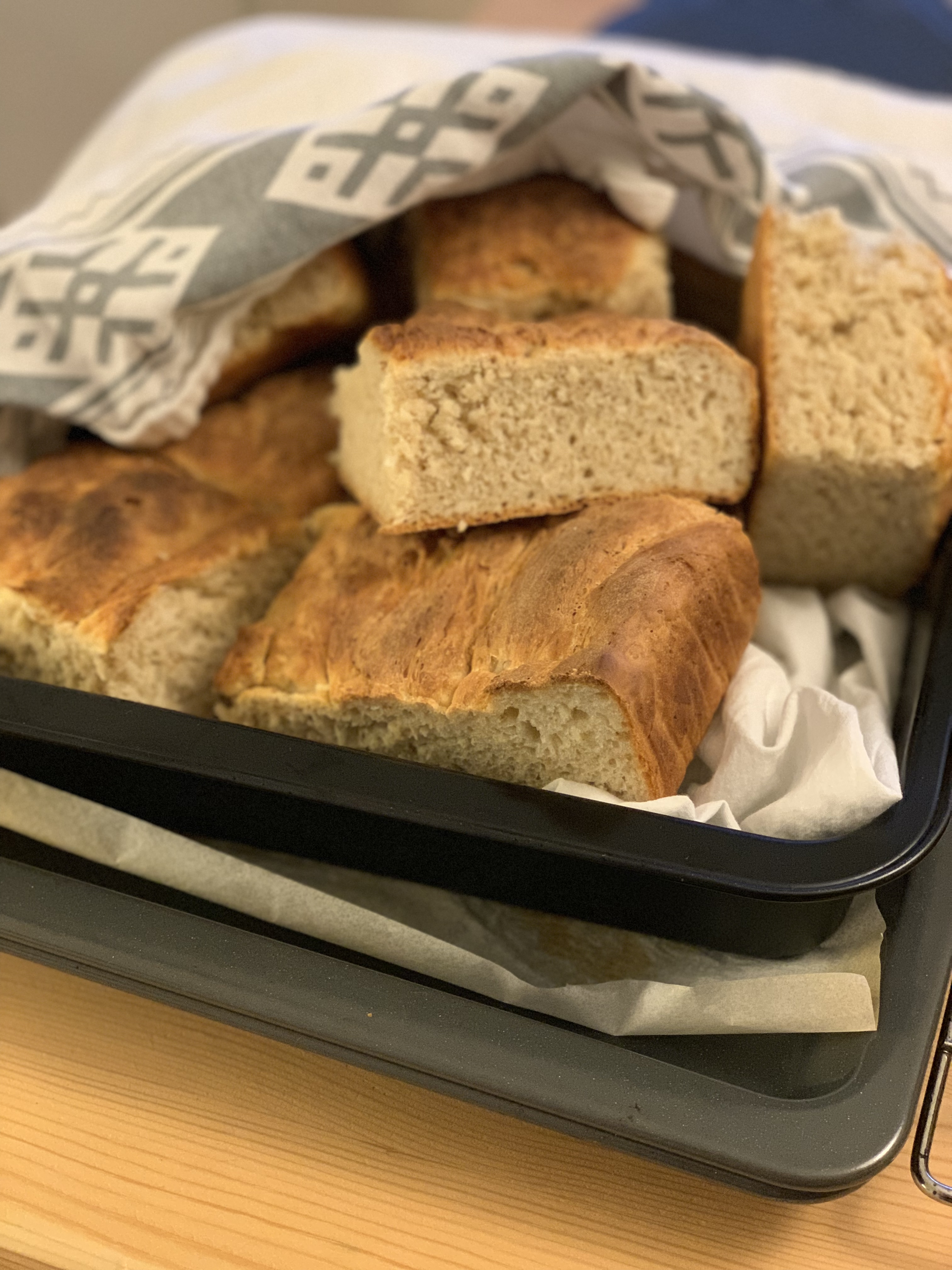 När jag bakar bröd så brukar jag låta brödet svalna, för att sedan portionsförpacka det och frysa in det i frysen, på så sätt kan jag enkelt ta fram en lagom stor mängd bröd för ändamålet och ändå behålla känslan av ett färskt bröd. Hembakat bröd håller sig inte lika färskt, mjukt och saftigt i brödlådan på köksbänken som köpebröd. Så mitt tips: frys in!