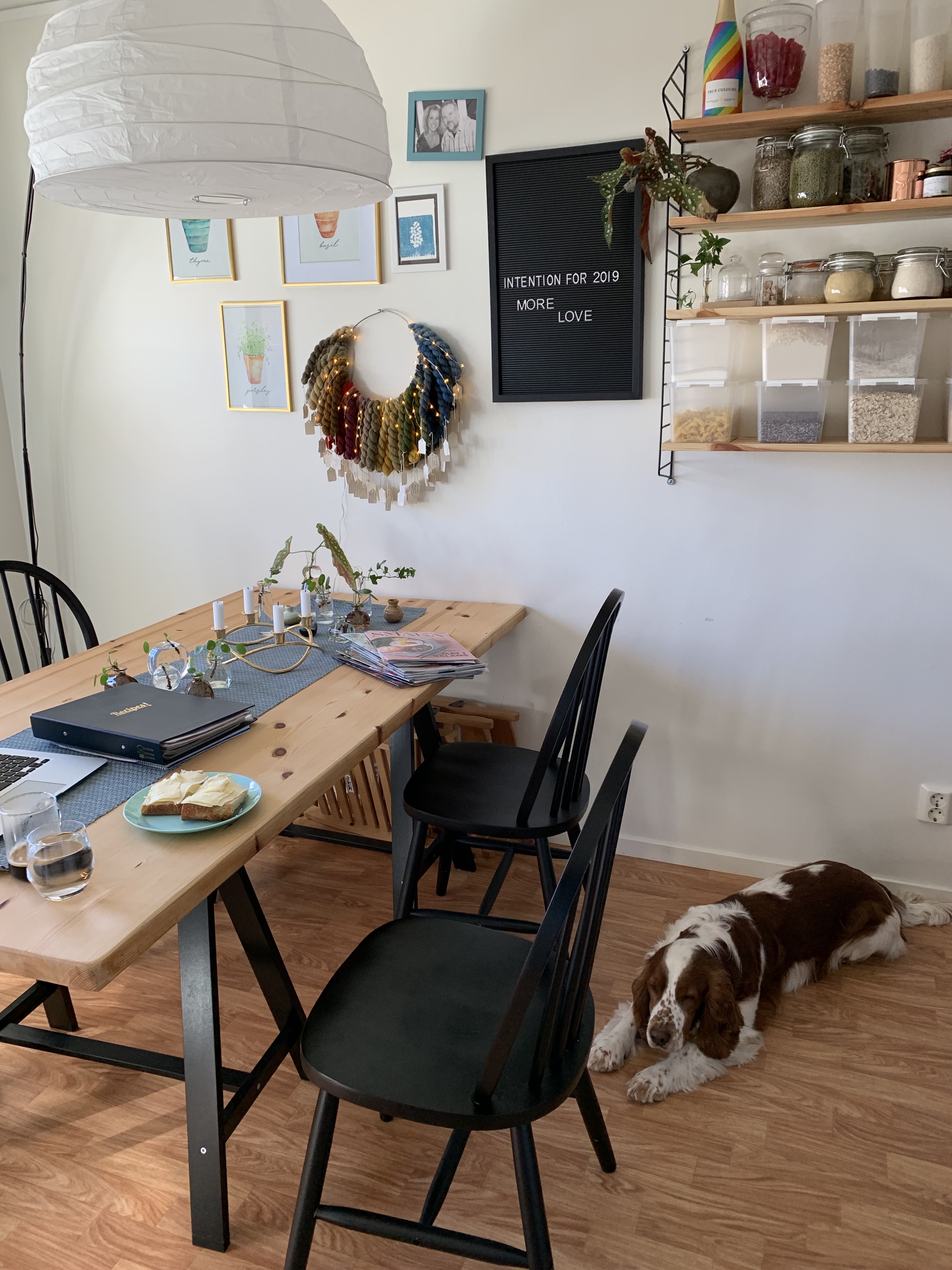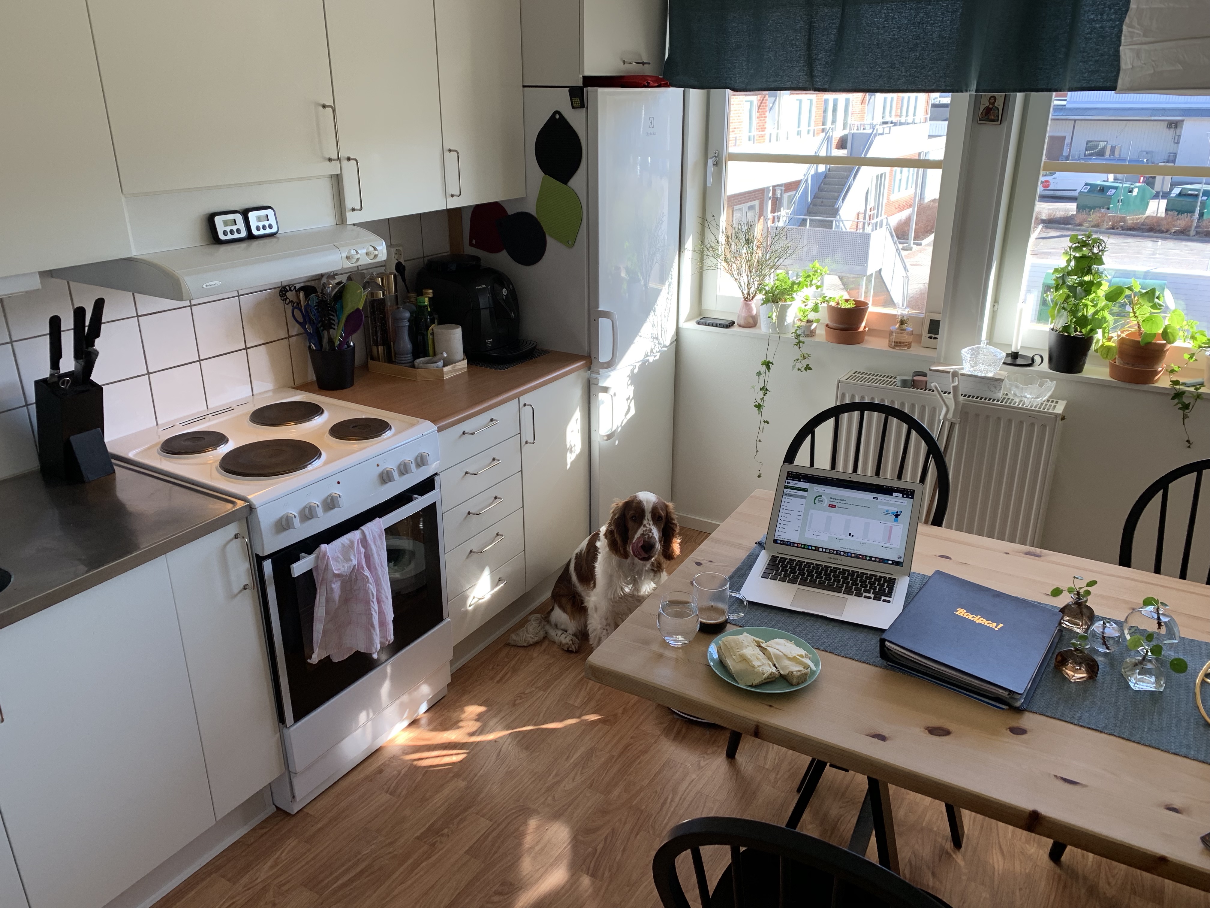 Jag heter Sofia, född 1990 och jag bor på västkusten nära till familj och hav. Jag bor i en ”vanlig” hyreslägenhet, men som är min drömlägenhet. Det känns som att det är min första vuxna lägenhet, och det tror jag har att göra med att jag ÄNTLIGEN har ett stort vanligt kök, och inte bara en liten kokvrå. Med mig bor min hund, 4årige Nike (hane). Han är en welsh springer spaniel, och han lider inte av mitt matlagningsintresse. Han tycker väldigt mycket om att få hemgjorda hundköttbullar som torkas till träningsgodis, eller när han får äta upp resterna ifrån ostbrickan (allt i lagom doser såklart).